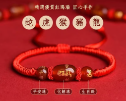 NT$1399十二生肖守護紅繩,紅瑪瑙紅繩手工編十二生肖守護神,本命年紅繩!詳情 - 心經戒指NT$899