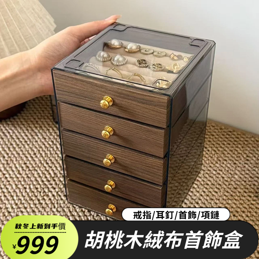 高檔精緻飾品收納盒多層胡桃木紋戒指耳釘耳環耳飾收納手飾首飾盒